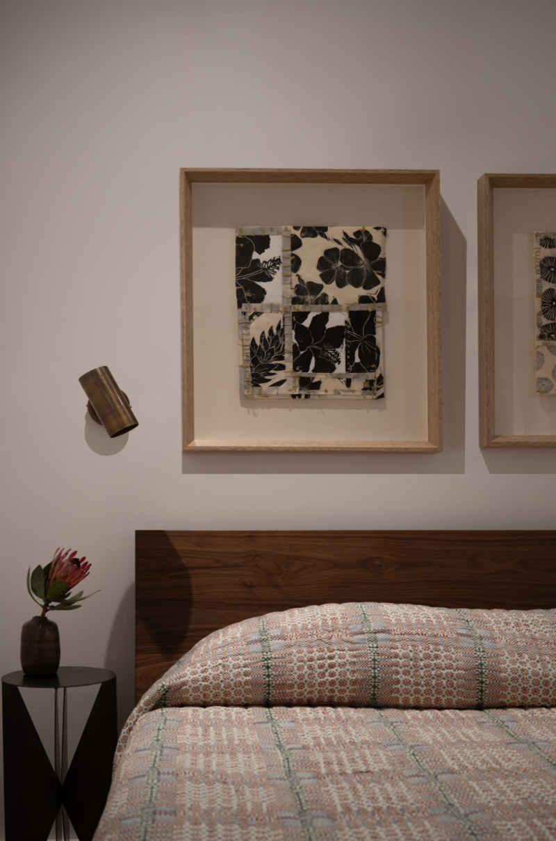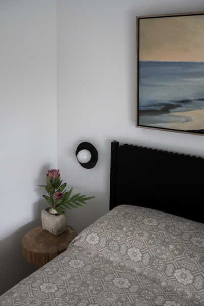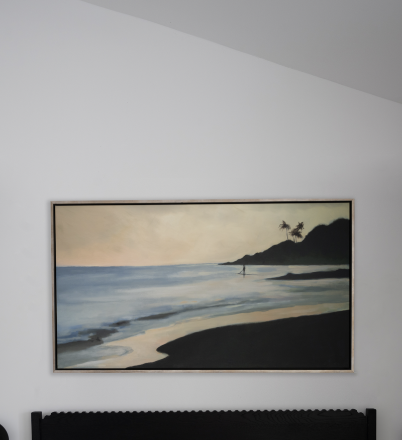 A custom Susanna L Cromwell diptych anchors one of the bedrooms, layering in texture and subtle island references that unify the design.